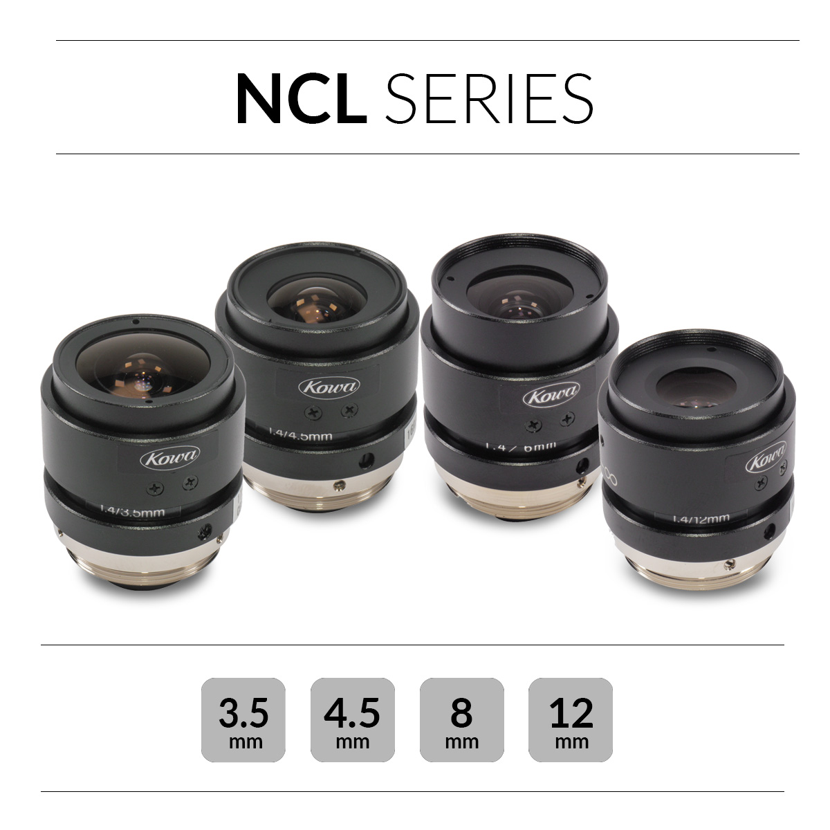 Product Information LM12NCL | 1/1.8″ 12mm C-Mount wide angle lens1/1,8″ Megapixel C-mount Industrial Lens